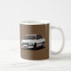 Französischer Klassiker aus den 80er Jahren. Zwei weiße Mops 505 Autoabbildungen auf einer Kaffee-Tasse. Großartiges Geschenk für Vintage Fanatiker. Passen Sie den Stil und die Hintergrundfarbe der Tasse an.
