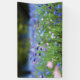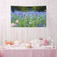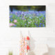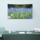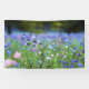 Ein Blumenfeld in tiefblauen und blassblauen Farbtönen, lila, Lavendel und Rosa mit blassgrünen Blätter.
