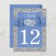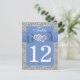 This cornflower blue and simulated silver foil wedding table number postcard with PRINTED ON ribbon and glitter joined hearts brooch will be a perfect addition to your wedding reception table decor. You must change the number 12 to each number that you need, add it to your cart, and then come back and repeat the process with each number that you need. Quantity discounts may apply once you add all the items to your cart. If you have any questions, contact niteowlstudio@gmail.com.