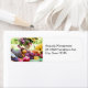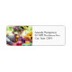 Adressetiketten mit einem Foto einer Tabelle, gefüllt mit natürlichen Füßen. Set mit Cornucopia, bunt geerntetes Gemüse und Obst.