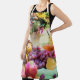 Schürze mit einem Foto von einem Tisch gefüllt mit Natur Fülle. Set mit Cornucopia, bunt geerntetes Gemüse und Obst.