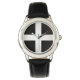 Uhr, Klassische Damenuhr mit schwarzen Lederarmband