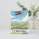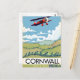 Cornwall Für eine Pause, ein schönes Vintages Reiseplakat mit Retro-Stil rotes Flugzeug, das über die Landschaft fliegt.