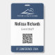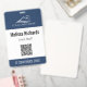 Streamline your check-in process with this Corporate Event QR Code ID Badge Template, designed specifically for trade shows, conferences, and large-scale summits. This professional badge features a prominent top header for your company logo and a central QR code area, making it perfect for touchless entry or digital networking. The clean white middle section clearly displays the attendee or staff member's name and role, framed by sophisticated navy blue accents for a polished, official look. Durable and fully customizable, it allows organizers to easily update event titles and individual details, ensuring a cohesive brand experience for all guests, sponsors, and team members.