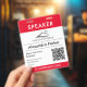 Command attention at your next tech summit with this Red Corporate Event Speaker QR Code ID Badge, designed for high-visibility and seamless networking. This professional vertical badge features a bold red header and footer that instantly identifies the "SPEAKER" or specific roles like VIP and staff. The clean white center provides ample space for your company logo, name, and job title, while the integrated QR code allows for instant digital contact sharing or session check-ins. Made from durable, high-quality materials, this fully editable template is the perfect identification solution for IT conferences, trade shows, and corporate seminars looking for a modern, high-energy aesthetic.