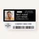 Represent your business in style by supplying staff with with modern and professional identification badges. Uploading your company logo, 1 square employee photo, and your security barcode is easy and quick. Using the templates for your company name, employee name and job title, employee ID#, and expiration date is simple and straightforward. The black and white design is classic. It can provide organization and security for company staff, while presenting the corporate branding with a stylish classic appearance.