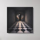 A long checkered corridor ends in a door that is also a wide-open eye.
