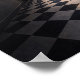 A long checkered corridor ends in a door that is also a wide-open eye.