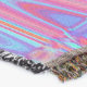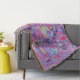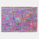 These throw blankets feature a Cosmic Abstract Rainbow Colors Retro Ripples Design with Purple, Aqua, Blue, Orange, and Red Accents.