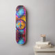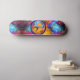 Powerful design in bold blues, orange, and pink provide the background for a dynamic peace sign.