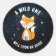 Cosmic Fox Wild One Pink Girl Baby Dusche Runder Aufkleber