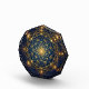 This is a stunning digital design that embodies the art of the Mandala and Sacred Geometry. It features intricate, luminous golden lines set against a deep, dark blue (navy) background, creating a dramatic and luxurious contrast. The design is centered around a brightly glowing core that radiates warm light. The complex structure combines star shapes, triangles, and flowing circular/spiral patterns, evoking a sense of depth, balance, and spirituality. It is an ideal representation of divine beauty, meditation, or opulence.