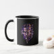 This mug showcases a bold futuristic face breaking apart into cosmic energy and geometric fragments — a visual expression of mental overload and constant thinking.