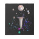 Ein zentrales Trompet-ähnliches Objekt, umgeben von farbenfrohen Kugeln und Sternexplosionen, ist das Set vor einem schwarzen Hintergrund. Die Anordnung gibt ein Gefühl der schwebenden oder kosmischen Zerstreuung.