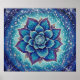 Intrikate blaue Lotus-Mandala mit geschichteten Blütenblättern und sternförmigen Punktakzenten - ein kosmisch, aquarellartiges Blumenkunstwerk ideal für Meditation und Dekoration.