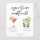 Dieses elegante Cocktails-Menü mit schlichter schwarzer Typografie über 2 Ihrer Lieblingsgetränke und deren Zutaten für Ihre Hochzeitsfeier an der Küste. Ein eleganter kosmopolitischer Gin und kräftiger zeichn sorgen für einen unterhaltsamen Flair in Ihrem Bar. Füllen Sie bitte die Namen des Paares und das Datum für seinen Empfang aus.