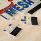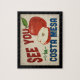 Ein charmantes Reisepuzzle aus Costa Mesa California mit einem schönen roten Apfel, zusammen mit einem lustigen Text im Retro-Stil, der sagt: "See you in Costa Mesa"