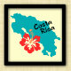 Costa Rica Karte Kontur mit Hibiskus Blume in tropischen Farben. Ändern Sie die Hintergrundfarbe, wenn Sie möchten (Menü/Hintergrund anpassen/bearbeiten)