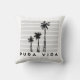 Das Kopfkissen der Palmen von Costa Rica Pura Vida wird in einem schwarz-weißen Palmendesign geworfen, das auf beiden Seiten des Kissens wiederholt wird.