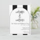 Costumes and Cocktails Halloween invitation featuring a minimal, black and white design with stylish handwritten style typography and stripes. Perfect for a fun, stylish, spooky, costumes and cocktails, adult Halloween party.