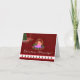 Das Design zeigt das zentrale Bild eines beleuchteten Adventskranzes im Vordergrund eines gemütlichen, beleuchteten Weihnachtsbaumes und Geschenke. Der individuell gestaltbare Gruß wird in weißem, dekorativem Schriftart angezeigt. Eine Reihe kleiner Weihnachtsbäume wird unten auf einem weißen Rücken dargestellt. Der Hintergrund des Designs wird in bordeauxrot dargestellt. Inside zeigt Ihre Nachricht und Signatur.