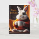 Auf dieser niedliche Geburtstag-Karte befindet sich ein gemütliches Hasen, das seinen morgendlichen Kaffee serviert.