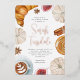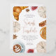 Freuen Sie sich auf einen eleganten Brautparty-Brunch im Herbst oder Herbst mit diesen schönen Aquarelleinladungen. Das Design zeichnet Ihre Feierlichkeiten in modernen Schriftzeichen aus, umgeben von Illustrationen von Frühstücksgebäck, Croissants, Kaffee, Feigen, weißen Kürbissen, Zimt und Anis in warmen Erdtönen mit Rose Goldfolie Akzenten und Schriften.