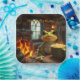 Diese Teller haben einen Frosch in seiner gemütlichen Zuhause mit einer Tasse Kaffee am Feuer.