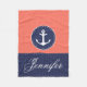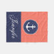 Cosy Nautical Coral Blue Anchor Custom Text Fleecedecke