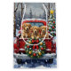 Bring happy, cotton-ball charm to your holiday season with this adorable Coton de Tulear Christmas design! This festive scene features three cute, white, fluffy Coton de Tulears sitting contentedly in the back of a classic red pickup truck, nestled in a picturesque snowy winter forest. The vintage truck is adorned with a vibrant Christmas wreath, twinkling with red and gold ornaments and warm, glowing lights. Soft snowflakes gently fall, enhancing the winter wonderland effect. A decorated Christmas tree in the background completes this heartwarming picture, making it an ideal Christmas gift for any Coton de Tulear owner, dog lover, or admirer of festive and beloved dog art. This design perfectly captures the joyful spirit of the holidays.