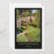 Arlington Row in Bibury, Cotswolds, Gloucestershire, England. Vintages Bahnhofposter mit alten Markierungen und malerischer Oberfläche.