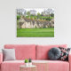 Ein wunderschöner Blick auf die Hütten von Arlington Row im Dorf Bibury in den Cotswolds in England auf einer Leinwand gedruckt.