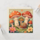 Blank card with a cute cottage style watercolor retro mushrooms, a whimsical snail and pink and yellow flowers. The colors a muted to give this illustration a vintage vibe.