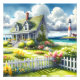 A dreamy coastal cottagecore landscape filled with soft watercolor charm and breezy seaside tranquility. A welcoming seaside cottage sits among lush garden paths, blooming flowers, and a bright white picket fence, creating a warm storybook atmosphere. In the distance, a tall lighthouse rises beside sparkling blue ocean waves, adding a classic nautical touch to this peaceful coastal setting. Fluffy clouds drift across a vibrant sky while sunlight washes over pastel florals, green lawns, and cheerful garden beds. The gentle brushstroke style gives the scene a whimsical, painterly feel reminiscent of cozy coastal living, cottage gardens, and relaxed seaside afternoons. Fresh spring colors, airy ocean blues, and soft floral pinks blend beautifully to create an enchanting cottagecore aesthetic that feels calm, nostalgic, and full of coastal charm. AI generated artwork.