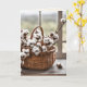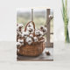 Baumwollzweig-Bouquet in einem braunen Korbkorb mit einem Fenster, um an Sie zu denken. Text kann geändert werden.