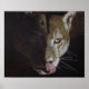 Der Cougar, oder Puma, kann bis zu 18' hoch in einen Baum springen. Die Artenkünstlerin Kathie Miller hat diese große Katze mit farbigen Bleistiften unter dem Deckmantel der Dunkelheit zum Durst gerissen.