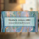 This luminous looking business card in green, blue, gold, and violet can be customized for any profession, but it's shown here for a licensed mental health counselor. It would also work well for a psychologist, such as someone with PsyD credentials, psychiatrist, or other type of medical professional, therapist, or healer. The front has an abstract design in opalescent colors that almost seem to shimmer and sparkle, giving sense of wonder and hope. The text, which is easy to customize, is printed in black on a background of teal green. The back of the card has placeholders for phone, email, your website, and address, and there's room for another line, such as social media details or a second address line.