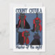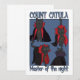 Black cats with crimson capes and golden amulets on a blue background; a playful vampire theme, bold contours; gothic fantasy meets nocturnal charm to create spooky and fun Halloween looks.
