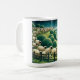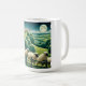 A flock of sheep roams across rolling hills under a starry night sky, with a bright full moon illuminating the landscape. The scene captures the tranquility of the countryside, with lush, green fields and neatly arranged trees.