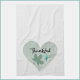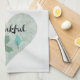 Schönes Küchentuch mit einem blauen Motivdesign: einfache Blätter, ein Herz, und THANKFUL in Schriftzeichen.