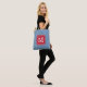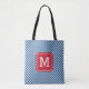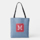 Stilvoll mit Monogramm Totentasche im Volldruckverfahren mit einem Country-schicken blauen Gingham-Muster. Personalisieren Sie es, indem Sie den Platzhalter-Text ersetzen. Für weitere Optionen, wie zum Beispiel den Schriftart zu ändern und seine Größe, klicken Sie auf die Schaltfläche "Anpassen". *Bitte beachten Sie, dass das Zazzle-Wasserzeichen, das in der Zoomvorschau angezeigt wird, nicht auf dem gedruckten Endprodukt angezeigt wird. © Rosewood and Citrus