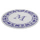 Dieses hübsche Schnittboard zeichnet Ihr Monogramm in leuchtend königsblau in einem ländlich chic runden, passenden blauen Rahmen aus. Der Rahmen hat ein doppeltes Herzdesign innerhalb von zwei gepunkteten Rändern. Das Bild und das Monogramm werden auf einem weißen Hintergrund platziert.