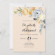 A country chic botanical white, orange, white, and blue hand drew watercolor floral wedding invitations with trendy orange ampersand typography customized initials.
