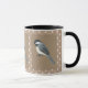 Diese Country Chickadee Tasse zeigt mein Gemälde eines Kichers auf einem braunen mit weißem Sternenhimmel. Eine tolle Geschenkidee für einen Land- oder Vogelliebhaber.