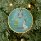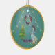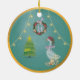 Add a soft touch of vintage holiday charm to your tree or gifts with this elegant ceramic ornament featuring a festive goose dressed in a ribboned hat and bow. A delicate teal background, twinkling lights, and a classic Christmas wreath. Makes a thoughtful teacher gift, hostess present, or tree keepsake. Gentle rose and blush tones with gold sparkle accents. Perfect as a small standalone gift . A template ornament to add your personal text on the back and or front.