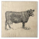 Ein Vintages ländliches Kuhdesign mit antiker illustrierter Kunst und einem Hintergrund aus Schriftzeichen. Ein Geschenk für alle, die Tiere und Vintage Land- und Western-Kunst Lieben!