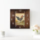 Country Farmhouse Rooster Rustikales Dunkles Holz Quadratische Wanduhr