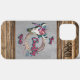 Personalisieren Sie diese einzigartige "One of a Kind" Cowgirl iPhone Case. Es gibt einen Kuhschädel, eingebettet in Rosa und Purpur Blumen & Federn, mit einem Seil auf einem Silberleder Hintergrund, braune Stressholzgrenzen und dem Zitat..."I'm Country Y'all"! Original Art Design von Künstler Kerry Miller.