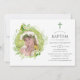 Waldtaufe, Taufe oder Widmung mit Farne, Wildblumen und Erdbeeren und einem schlüpfen grünen Aquarellhintergrund. Es wird ein porträtförmiges Foto empfohlen. Es wird ein quadratisches Foto empfohlen.