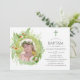 Waldtaufe, Taufe oder Widmung mit Farne, Wildblumen und Erdbeeren und einem schlüpfen grünen Aquarellhintergrund. Es wird ein porträtförmiges Foto empfohlen. Es wird ein quadratisches Foto empfohlen.